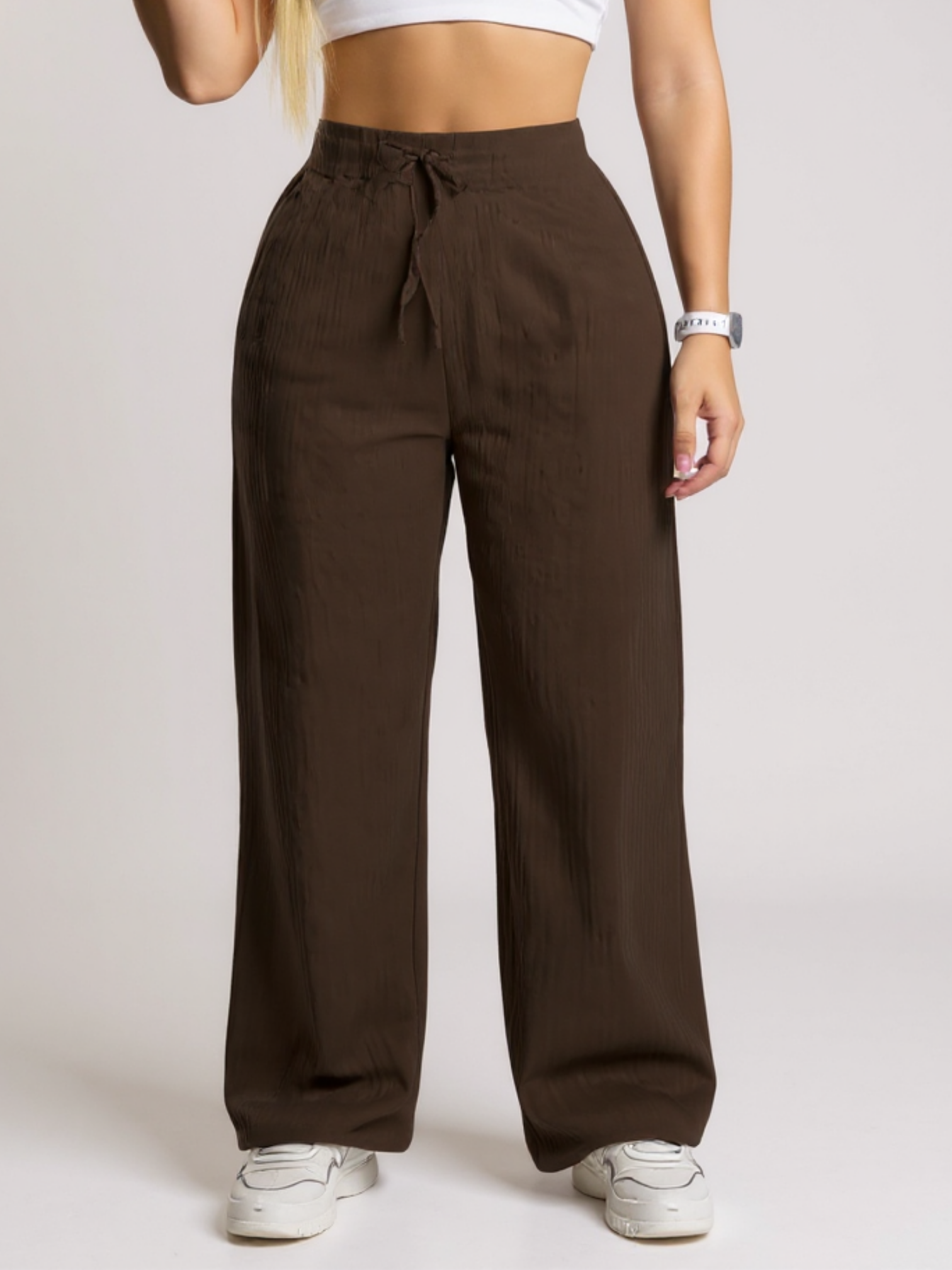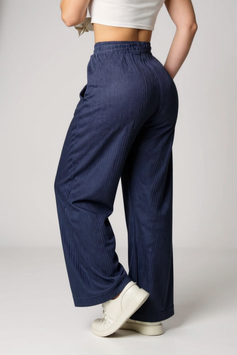 El Pantalón Acanalado en Poliester Stretch es la mezcla perfecta entre comodidad, estilo y textura. Su tela galleta —caracterizada por su relieve texturizado y su elasticidad suave— ofrece un ajuste cómodo que se adapta al cuerpo sin perder la forma, manteniendo una caída fluida y elegante.